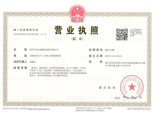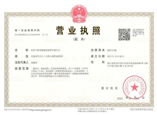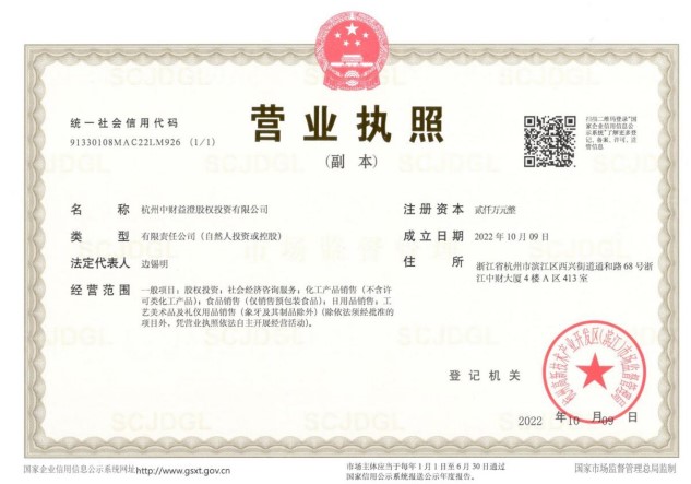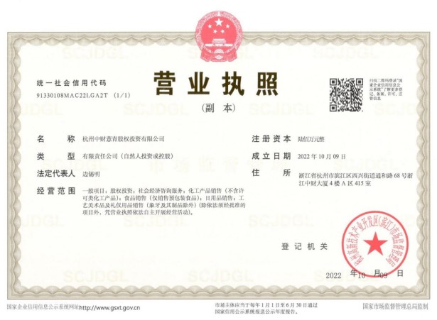 中財訊 根據(jù)中財董局字[Ⅷ]第6號之文件精神,為進一步壯大中財投資事業(yè),全面構(gòu)建中財投資十一條大街,在集團首席投資官、集團常務(wù)副總裁、集團執(zhí)行總裁(資本)的組織籌建及各級領(lǐng)導(dǎo)的通力支持下,杭州中財益澄股權(quán)投資有限公司、杭州中財?shù)涝垂蓹?quán)投資有限公司,杭州中財薏青股權(quán)投資有限公司、杭州中財識源股權(quán)投資有限公司等四家公司已于2022年10月9日領(lǐng)取營業(yè)執(zhí)照,正式成立。